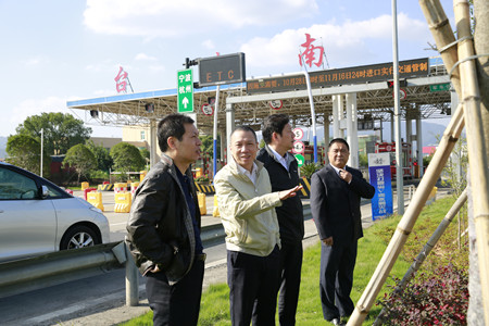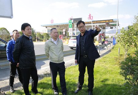 圖為集團副董事長、總經理張建平在臺州南收費所主站考察協調院橋互通綠化、養護等工作
