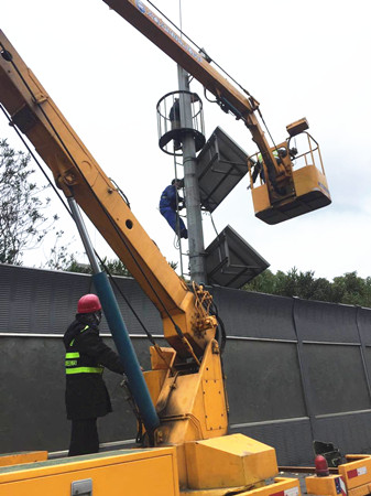上圖為更換太陽能板現場 為盡快解決這一問題,中心聯系三家太陽能板供應商,通過對性能、價格、服務等多方面比較后,最終選定杭州一家單位負責此次太陽能板供貨、拆除及安裝工作。1月24日,設備到貨,但同時也碰上了今年入冬以來最強冷空氣??扇舨患皶r更換,勢必會影響春運安全行車。 面對困難,中心隊員并未退縮,每天起早摸黑,帶領安裝人員親赴施工現場,負責監管和預警工作。每當路面飛駛而過的車輛帶起陣陣寒風,吹的隊員瑟瑟發抖時,施工人員都會勸說隊員回車上休息,但都被謝絕了,不僅依舊緊盯施工進度和質量,還協助他們一起拆卸和搬運。在大家共同努力下,所有破損太陽能板在不到3天的時間里被拆卸和更換,比預定時間提前了整整一天。 更換后的新太陽能板最大輸出功率較之前提高了15%,這將大大提升太陽能板對蓄電池充電效率,保證監控云臺有效運轉,為高速的安全暢通保駕護航。 項寅曉