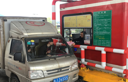 圖為收費員向過往司乘人員發放倡議書