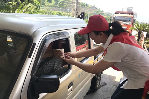 圖為志愿者為過往司機遞上消暑品 “師傅,辛苦啦!喝杯綠豆湯,解解暑氣吧!” “大熱天的,您可要多注意休息呀,千萬別疲勞駕駛,這是礦泉水和風油精,希望能幫您緩解疲勞。” 活動當天,該所在車道安全島內搭起臨時“便民服務臺”,為司乘人員免費提供礦泉水、綠豆湯等解暑佳品。同時還針對夏季出行容易出現的中暑、暈車現象,備足風油精、人丹等解暑降溫藥品。