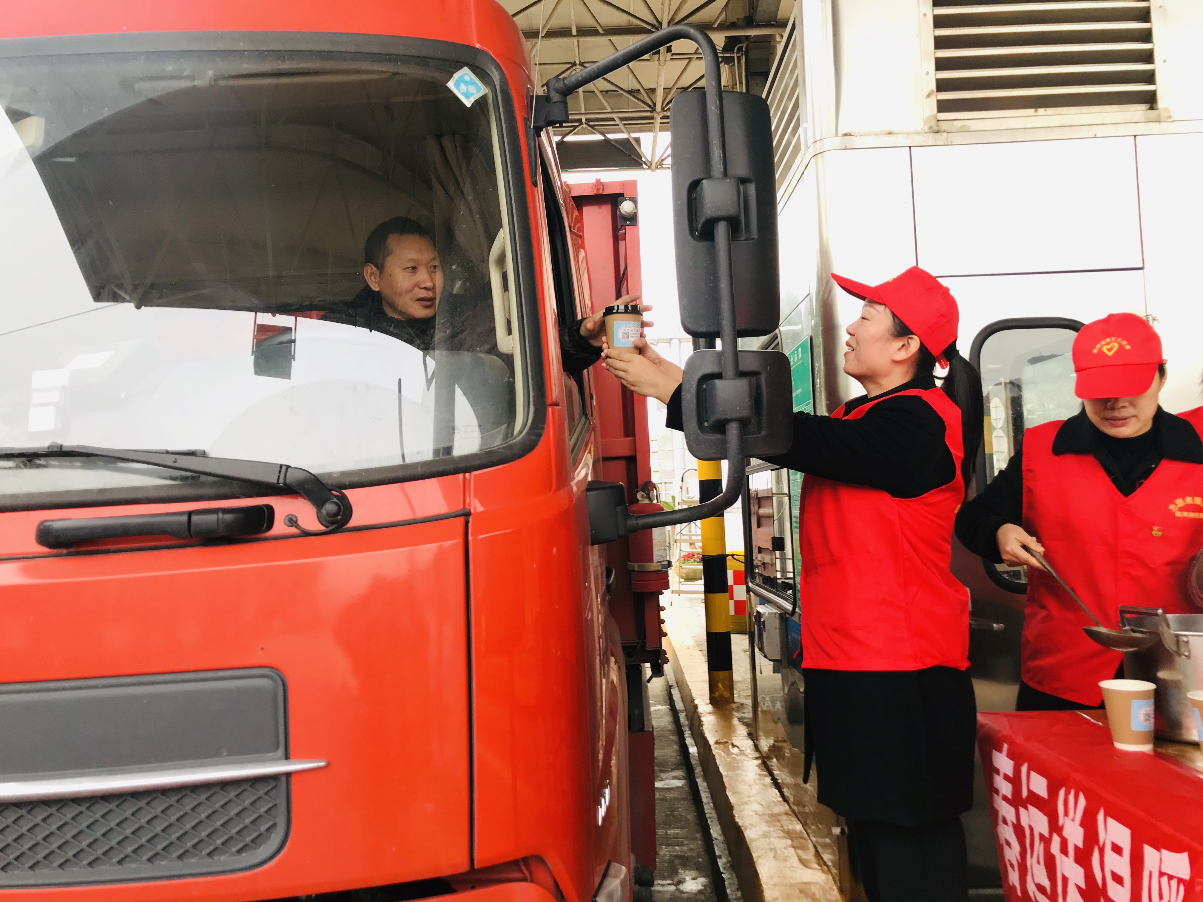 活動當天,雖然氣溫較低,但在臨海南收費所出口處,身著紅色馬甲的志愿者們頂著嚴寒,依然熱情地為過往司乘人員遞上一杯杯滾燙的姜茶、紅棗茶,并向他們提供問詢、指路、飲水和提示路況信息等便捷服務。除了設置志愿者便民服務臺,臨海南收費還為過往駕駛員和出行旅客臨時增設休息室提供道路溫馨提示服務同時還在車道配備了飲水機、藥品、修車工具等免費便民物品