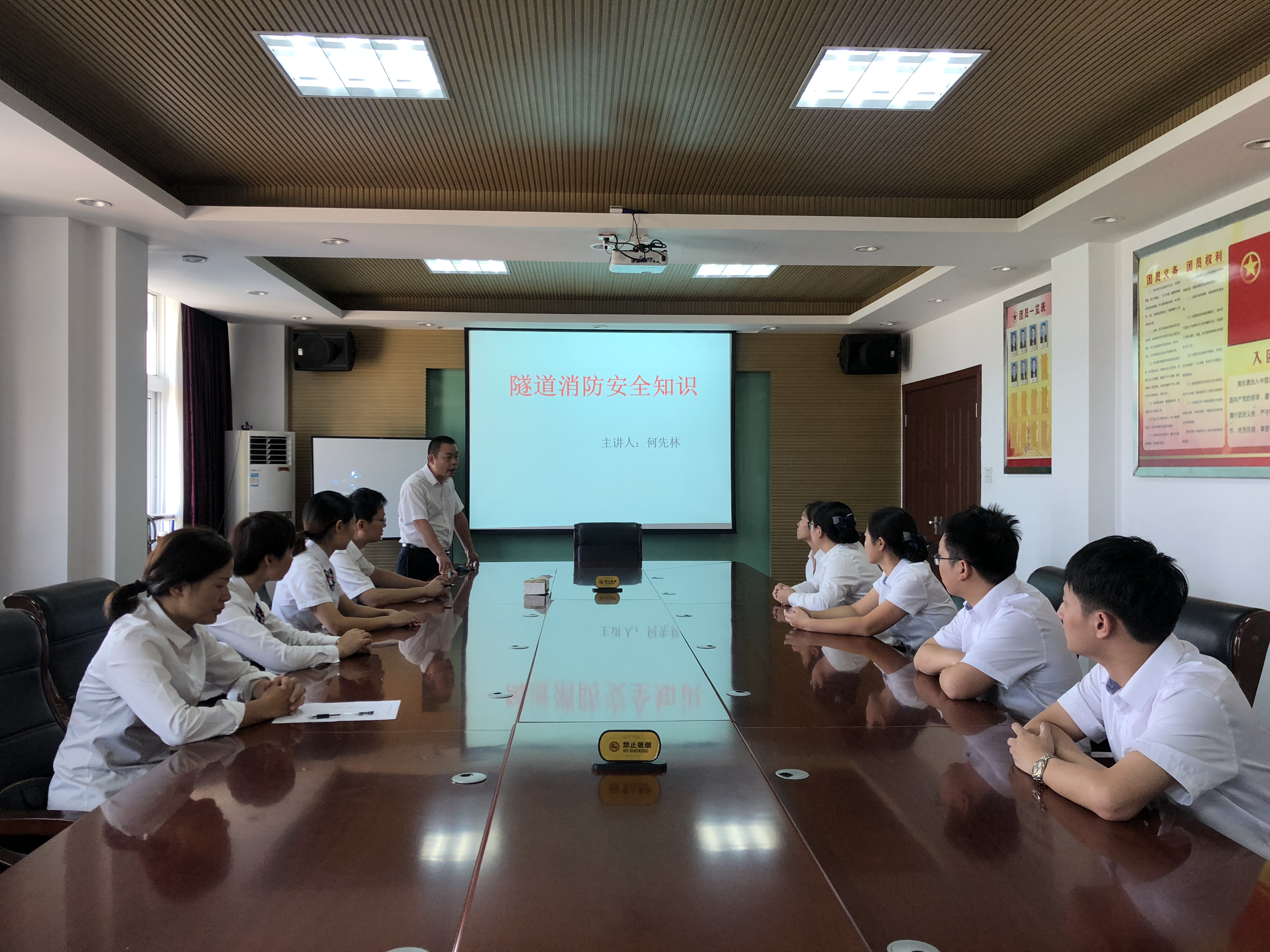 關注消防 平安你我 臺州收費所開展隧道消防安全知識培訓 為提高員工火災救援能力增強員工隧道防火意識,9月26日上午,臺州收費所組織員工開展隧道消防安全知識培訓。此次培訓由該所副所長何先林主講。行政人員、征費班組人員參加培訓。