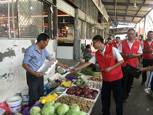 圖為志愿者在菜場宣傳垃圾分類