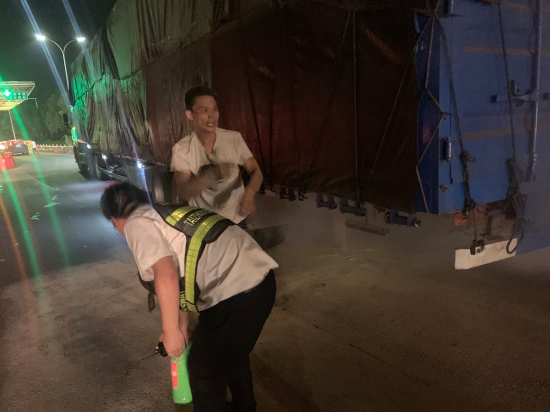 貨車起火,收費(fèi)員齊力撲滅
