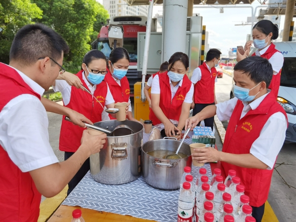 炎炎夏日送清涼 關懷司乘暖人心 ——溫嶺西收費所開展夏日“送清涼”活動 “師傅,您好,喝杯蓮子湯解解暑吧!” “師傅,你們辛苦了,喝杯綠豆湯,消消暑熱!”