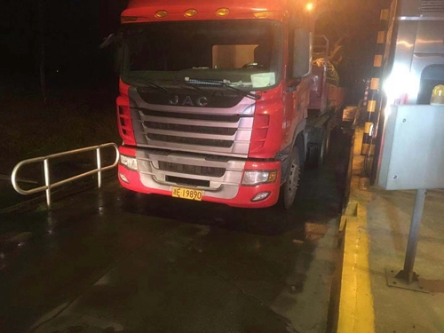 圖為超高超寬的運(yùn)樹大貨車 5:10分,違章大貨車通過黃土嶺隧道,由于大貨司機(jī)一直違章占隧道中線行駛,未對黃土嶺隧道設(shè)施設(shè)備造成影響,執(zhí)勤隊(duì)員便跟在違章車輛后面關(guān)注其進(jìn)出口動(dòng)向。 5:29分,違章車輛在臺州南副站出口處被執(zhí)勤隊(duì)截停,等待處理善后事故的交警車輛到來。