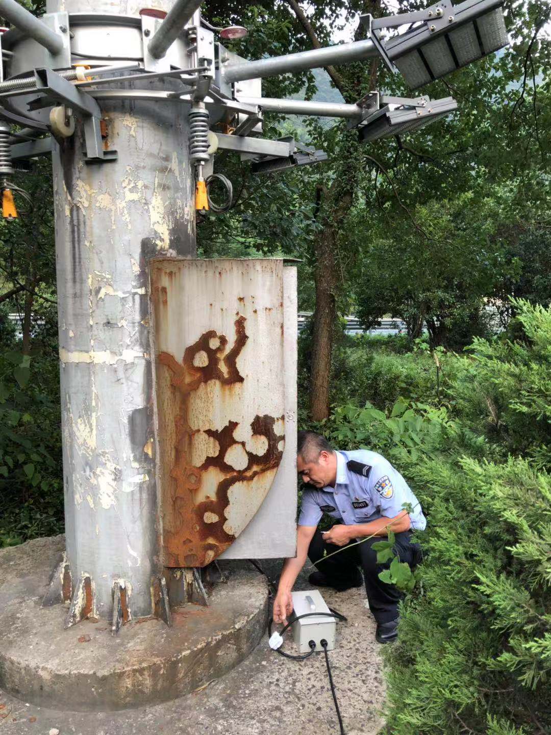 圖為臺風(fēng)過后隧道所人員檢查南廣場高桿燈