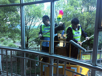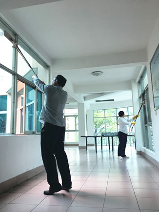 當天午飯過后,大家便一齊動手,清理衛生死角、彈蜘蛛網、擦玻璃、用水沖洗紗窗、掃場地......分工合作,忙得不亦樂乎。