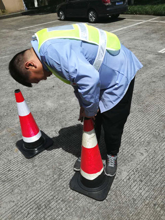 大溪嶺隧道所執勤隊遇隧道內車輛事故、拋錨等會出警預警,處理險情時則會在車輛后方150米處擺放反光警示椎(俗稱小紅帽),它是臨時分隔車流、引導交通,指引車輛繞過危險路段,保護現場設施和人員安全,起隔離警示作用。小紅帽的頂端有層反光膜,不用時以套疊式放置,使用時再逐個抽拔出來,因經常抽拔,表層反光膜與桶體摩擦而導致反光膜脫落,一陣風就會讓反光膜成碎片狀滿天飛舞,給隧道預警工作帶來極大的不安全因素,但若棄用這些沒有反光膜的小紅帽,則又很浪費。