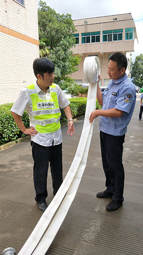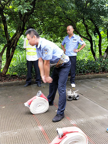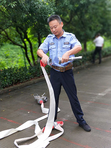 安保人員馮常敏擔任此次主講,授課內容為兩盤水帶的鋪設和連接、連貫動作練習。他首先進行講解示范,并分解每一個動作要領。慢慢地教新人如何操作。