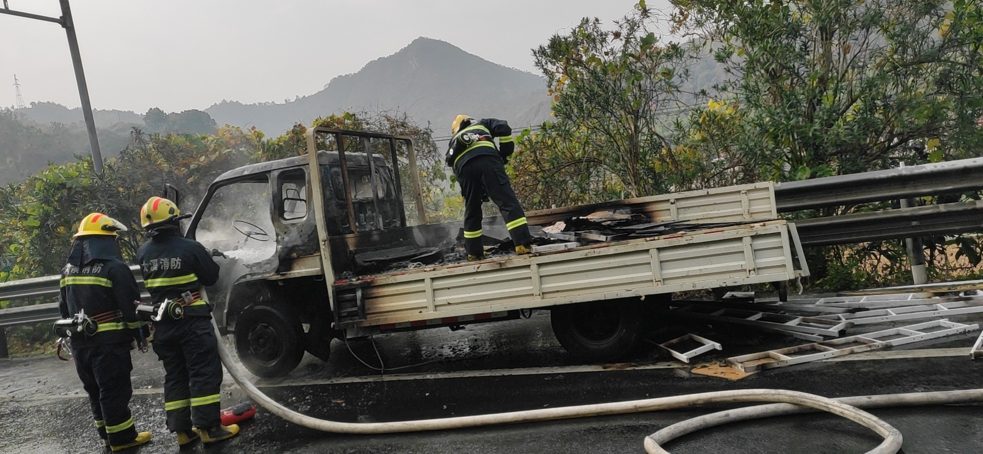 大溪嶺溫向隧道口發(fā)生貨車火災