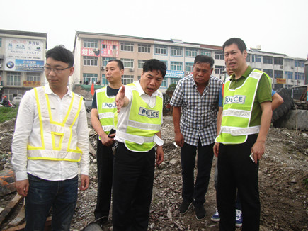 圖為公司總工程師江輝、安全總監項同富在臺州南互通跨線橋施工現場指導安全工作