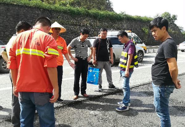 集團總工程師江輝到臨海南匝道現場查看病害