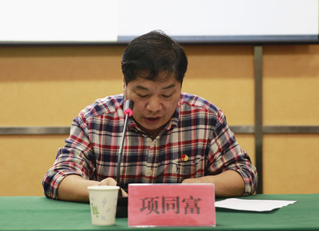 圖為安全總監項同富傳達市長張兵在安全生產委員會會議上的重要講話精神