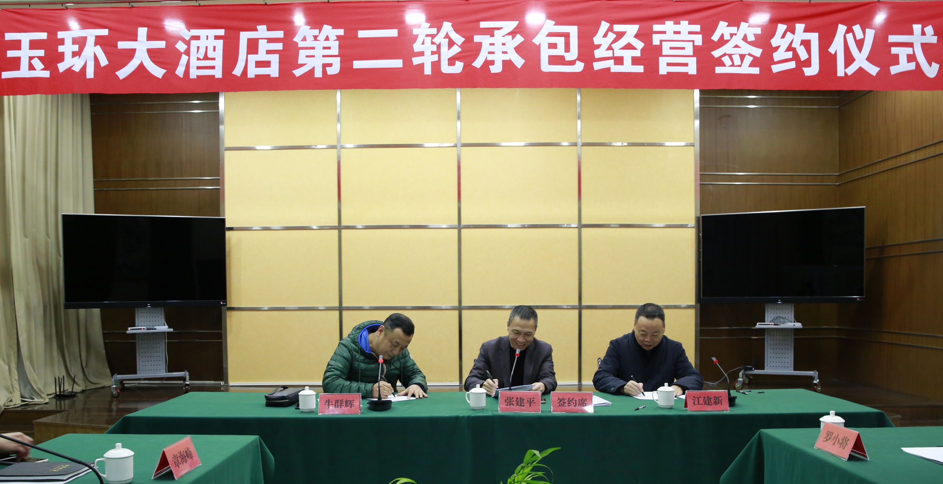 12月1日下午,集團副董事長、總經(jīng)理張建平,玉環(huán)縣長城房產(chǎn)公司董事長江建新,集團下屬玉環(huán)大酒店董事長牛群輝,三方代表集聚于大樓26樓會議室,簽訂玉環(huán)大酒店新一輪承包經(jīng)營協(xié)議,開啟酒店后續(xù)經(jīng)營之門。集團經(jīng)營班子和相關人員到場見證了這一重要時刻。