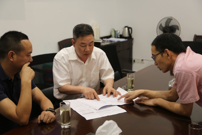 圖為集團安全總監項同富帶領安保部相關人員檢查現場