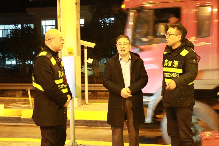 為確保取消省界收費站工作平穩過渡,12月31日,臺州市副市長林先華、市交通局局長陸善福、市公路局局長馬德勝,以及當地政府部門領導紛紛來到集團一線收費站,協力助推取消高速公路省界收費站工作順利開展。
