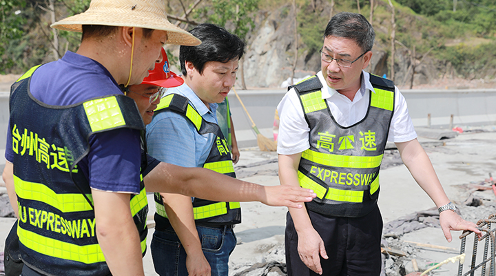 上午,臺州高速集團黨委書記、董事長、總經理陳文波,公司黨委委員、總工程師江輝,以及工程部相關人員一起來到公司所轄路段,檢查施工進展情況。