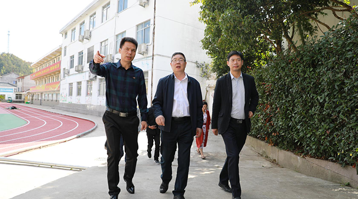 圖為陳文波等人實(shí)地參觀了解學(xué)校場(chǎng)地