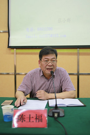 圖為市國資委副主任陳土福主持會議 培訓會分別邀請了臺州市安全生產監督管理局張小群處長和杭州六進消防培訓中心李峰教員進行授課。