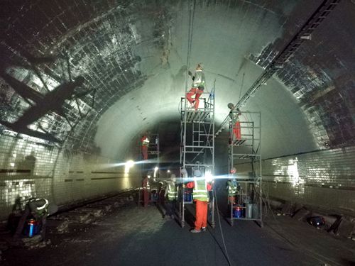 圖為隧道施工現(xiàn)場 目前,大溪嶺機電改造項目中的消防落管已完成總工程量的85%;土建項目中的涂料施工已完成總工程量的 95%、澆筑施工完成總工程量的75%、開槽裂縫完成總工程量的98%;機電項目中的新裝橋架支架完成了75%,照明燈具安裝完成了25%,拆除工作已經基本完成。預計下階段將完成各項機電設備安裝工作及各種線纜的鋪設等工作。 馮曉潔