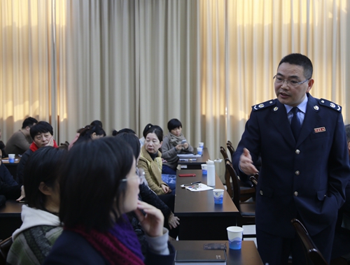 圖為臺州經濟開發區稅務局局長柳東海在課上講話