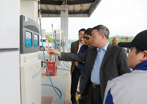 圖為公司領導陳文波在臺州市浙能油氣發展有限公司公交綜合站加氣(加油)站調研 “公交車、出租車一次可以加多少公斤?加足一次可以開多少公里?”在臺州市浙能油氣發展有限公司公交綜合站加氣(加油)站,陳文波詳細詢問站內工作人員,當得知公交車一次可加100公斤、出租車一次能加10多公斤并能開200多公里時,陳文波表示了贊許。該加氣(加油)站目前日均加氣量約9噸,從2018年7月2日至今10個月的運營,共為100多輛LNG公交車和500多輛CNG出租車提供加氣服務。陳文波指出,加氣站要借浙江省民生工程中增加綠色能源公交車的政策東風,積極開發拓寬天然氣用戶,努力提升銷售量。