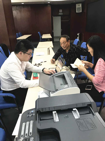 戴著一副黑框眼鏡,憨實(shí)魁梧的身形,說(shuō)話(huà)輕言慢語(yǔ)。據(jù)說(shuō),某天下班后,還坐在椅子上打電話(huà),一臉溫柔,竊竊私語(yǔ),同事一直以為他在談戀愛(ài),這打完了電話(huà),才知道是接到股東的電話(huà)了,跟對(duì)方在解釋股權(quán)收購(gòu)政策呢。 在股權(quán)流動(dòng)收購(gòu)點(diǎn),小李是電腦操作人員,所以也不大參與解說(shuō)工作。只是那天正好一位阿婆坐在了電腦對(duì)面,說(shuō)話(huà)之間才知大字不識(shí),是聽(tīng)鄰居說(shuō)的,就自己摸到這里了。正好手里也空了,李騰飛頓頓身子,放松下來(lái),以黃巖特有的吳言?xún)z語(yǔ)跟阿婆解釋了十幾分鐘,果然,白凈的臉上是一臉的和氣,沉穩(wěn)又實(shí)在,確實(shí)是傳說(shuō)中的暖男一枚呀。末了,幫阿婆代簽了字,讓阿婆按了手指印。 但是,在工作的時(shí)候,小李讓我們見(jiàn)識(shí)到了“騰飛”的效果。流動(dòng)點(diǎn)只設(shè)一臺(tái)筆記本電腦,線(xiàn)上操作都?xì)w他,在大溪鎮(zhèn)政府,來(lái)的股東有百十號(hào),流動(dòng)小組包括駕駛員何杰靚迅速開(kāi)展了流水作業(yè)。此時(shí)此刻,小李那一雙肥白的大手在小巧的鍵盤(pán)上十指翻飛,靈活敏捷,操作如行云流水,打印機(jī)刷刷地響,不停飛出一份份協(xié)議,傳到下一個(gè)工作人員這里。這才知道,每一個(gè)人的名字都是名副其實(shí)的,“騰飛”的含義是在這里體現(xiàn)的呀。 鄭蔚
