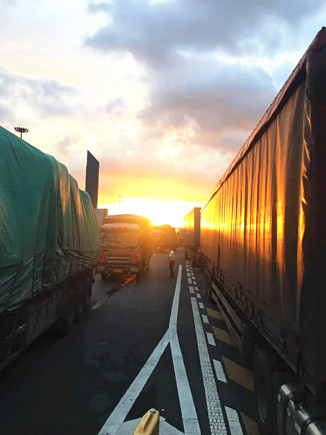 圖為分流現場 為保證車道安全、有序、暢通,該所認真對待,除做好零鈔、備用發票、備用打印機等常規的準備工作外,凌晨4點30分,行政值班人員、征費二班全體收費員便開始在車道嚴以待陣,接到分流通知后,開啟全部車道,同時ETC切換成人工。班長去內廣場維持通行秩序,其中一名員工在外廣場指揮及做好導向工作,行政值班人員參與車道旁站,業務熟練的員工在崗收費,在場人員分工有序,密切配合。直至7點,隧道中排燈拆除完畢,收費車道上僅3個出口可以通行,不過在全體人員的共同努力下,未發生擁堵事件,該所順利完成分流工作。 夏蓮萍