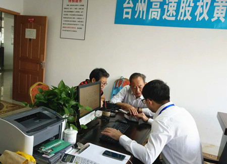 圖為黃巖收購(gòu)點(diǎn)工作人員服務(wù)股東現(xiàn)場(chǎng)