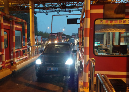圖為高峰時期的ETC出口車道情況