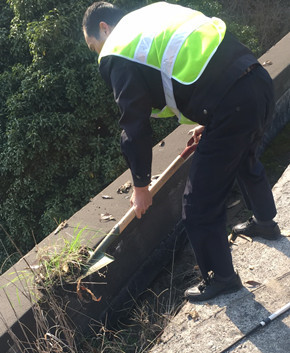 所執勤隊根據安排,排查配電房、管理房等汛期容易受災害影響的隱患,遵循“發現一處整治一處,整治一處銷號一處”的原則,對配電房、管理房的屋頂排水這一安全隱患和薄弱環節進行清理,以實際行動落實整改和消除隱患,確保2018年安全度汛。