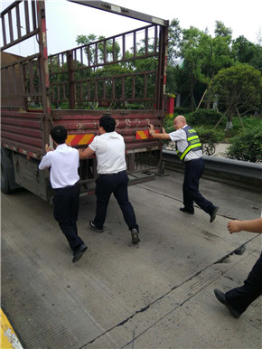 湯明漲簡(jiǎn)單地詢(xún)問(wèn)了洪燈杰事情的經(jīng)過(guò),本來(lái)準(zhǔn)備等拖車(chē),可是現(xiàn)在正是中午車(chē)輛高峰期,加上五號(hào)車(chē)道在施工,等拖車(chē)不合適。如果導(dǎo)致一號(hào)車(chē)道堵車(chē),切換ETC也緩解不了。考慮到這些問(wèn)題之后,湯班長(zhǎng)決定叫來(lái)幾個(gè)“大力士”,幫忙推車(chē)。