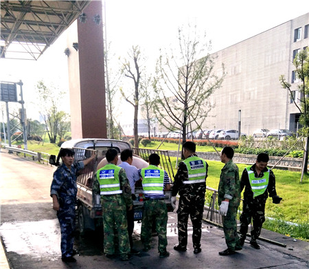 這輛從杜橋入口、沒有安裝防護網,只在車廂兩側裝了防護欄的五菱小貨車,運載著數十頭豬,在臺州收費所享受綠農車免費放行后,正要啟動車輛離開時,一頭豬趁機從車廂內奮力一跳,跳到了車道上。當班副班長何丹燕第一時間發現,急忙向駛離的小貨車大喊 “師傅,豬掉了,豬掉了”。