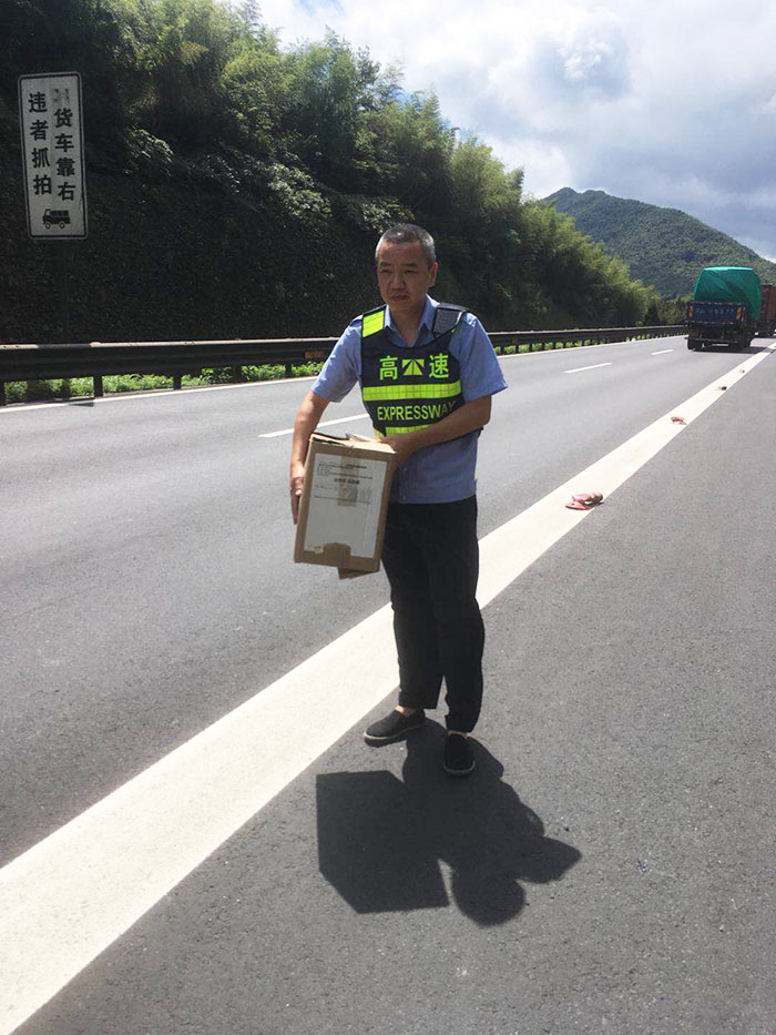 快遞車高速路上不慎丟包裹 值勤隊多方聯系歸還原主
