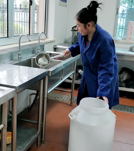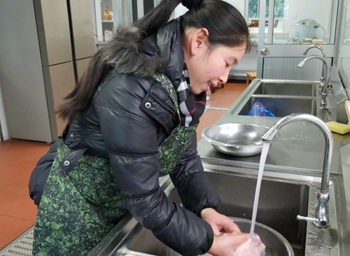 圖為大溪嶺隧道所用上了清澈的自來水 “之前,用水量緊張, 用水條件差,要拿勺子這么舀著洗,費時費力,現在終于不用再拿勺子盛水洗菜了,方便!”食堂阿姨笑瞇了眼。