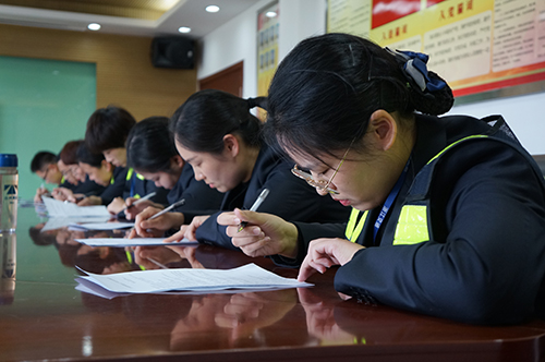 現場問答氣氛熱烈,主持人接連提問,精彩的角逐引來現場陣陣掌聲,偶有答錯的大家一起來糾錯。在搶答中,各班組比分逐漸拉開,最終收費二班的郭斯泓、葉定嬌、周欲曉一組獲得現場問答環節第一名,同時費二班在班組筆試中也名列第一。