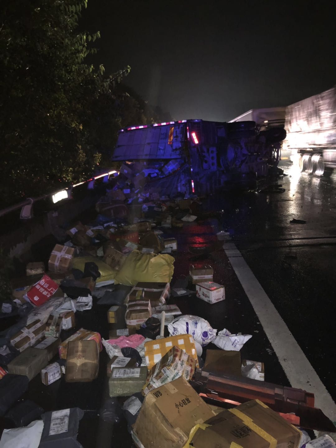 圖為事故車上灑落一地的快遞