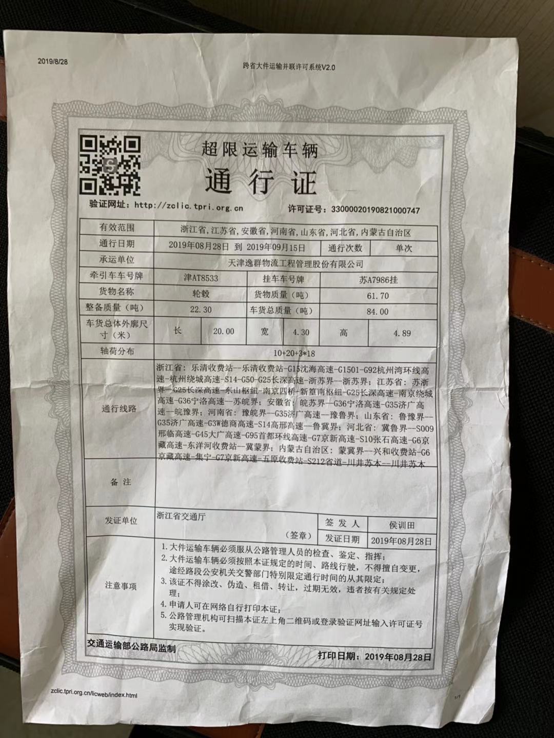 圖為該車通行證 在此,筆者提醒廣大司機朋友們,一定要合法裝載,避免超限超載。高速公路現已實行黑名單制度,違法超限超載運輸車輛將被納入“黑名單”,如未及時處理將禁止其駛入高速公路。 楊雅芬