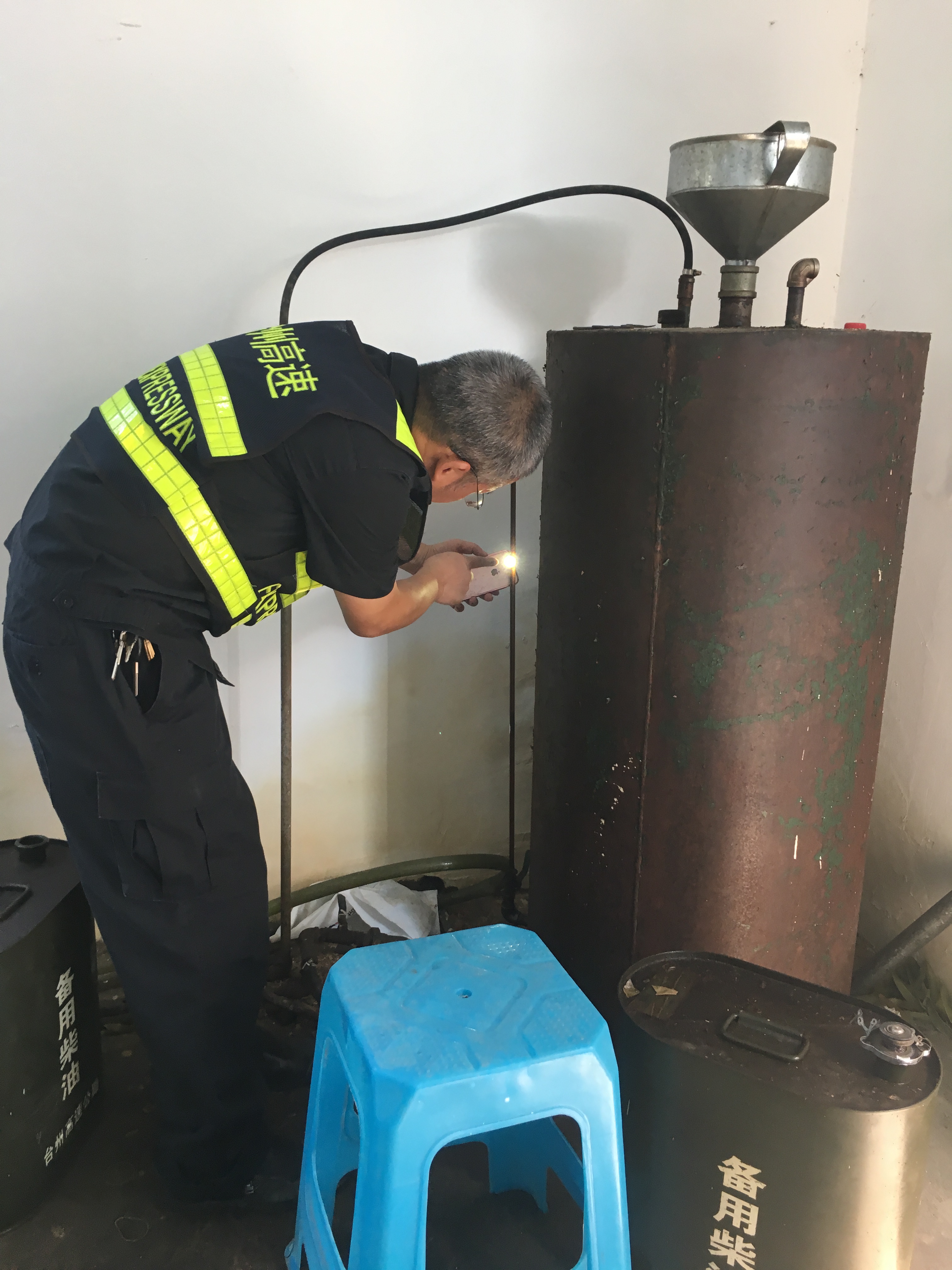 圖為工作人員在檢查發(fā)電機(jī)柴油
