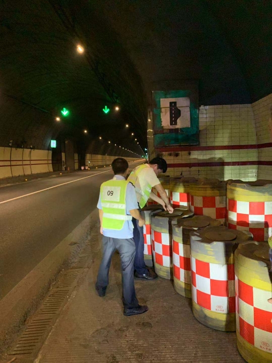 為改善行車環(huán)境,保障隧道安全暢通,沿線隧道所工作人員重點(diǎn)檢查了洞內(nèi)火災(zāi)報(bào)警系統(tǒng)、消防箱、滅火器、火災(zāi)事故廣播等設(shè)施,仔細(xì)查看隧道洞口交通信號(hào)燈、安全出口等交通指示標(biāo)志以及機(jī)電設(shè)施及照明設(shè)施是否正常運(yùn)作。期間,維養(yǎng)中心更換塘嶺隧道左右洞共18盞路燈燈頭,保證了洞口照明亮度。
