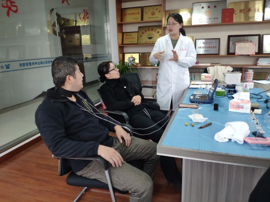 圖為萬老師為咨詢?nèi)藛T理療 “你的頸椎有些僵,平時是不是會頭暈頭疼?”萬老師一邊按著小楊的頸椎一邊輕聲地問。 “對的,經(jīng)常頭疼。” “低頭族的頭部容易供血不足,長期以往會得頸椎病的。來,我給你按一會,然后用理療儀針灸一會。” “老師,我想瘦一點,按哪里好?” “老師,我脫發(fā)比較厲害,怎么調(diào)理比較好?” 前來咨詢的員工都帶著問題等著萬老師給大家講解。現(xiàn)場氣氛熱烈,大家互相分享通過拔罐、按摩穴位、針灸理療感受瞬間變化。 中醫(yī)藥文化是我國的國粹,是中華民族優(yōu)秀文化的瑰寶,與我們生活息息相關(guān)。這次活動讓全所員工了解“治未病”、認識“亞健康”、擺脫“亞健康”,在工作間隙獲得了更多健康知識,以更強健的身體投入工作。 楊雅芬
