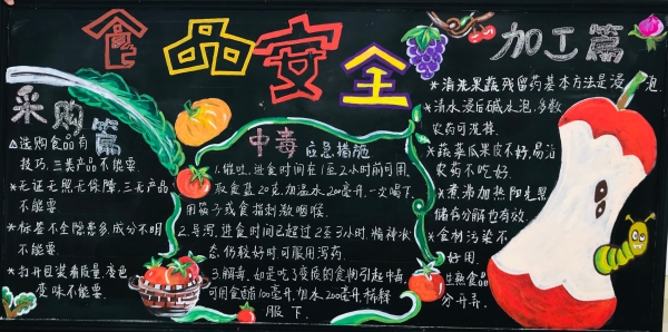 活動(dòng)前期,臨海南收費(fèi)所臨時(shí)組建五人板報(bào)小分隊(duì),充分利用空余時(shí)間搜集有關(guān)安全教育資料,對(duì)內(nèi)容、畫(huà)面進(jìn)行認(rèn)真整理、篩選。最終決定三個(gè)板塊,以提高安全教育為目的,以不同風(fēng)格主題來(lái)呈現(xiàn),從多方面、多角度設(shè)計(jì)與繪制,達(dá)到了更好的安全教育宣傳效果。 活動(dòng)開(kāi)展后,參與者們分配好各自的任務(wù)后,出黑板報(bào)的工作便熱火朝天地展開(kāi)了。大家利用自身的特長(zhǎng),通過(guò)粉筆字、繪畫(huà)等藝術(shù)形式,對(duì)黑板報(bào)進(jìn)行了精心的設(shè)計(jì),主題鮮明,內(nèi)容充實(shí),圖文并茂,趣味性強(qiáng),全方位、多角度地宣傳了《消防安全》、《食品安全》、《交通安全》三大主題。其中在交通安全宣傳方面,如何使交通安全內(nèi)容,更加直觀形象、簡(jiǎn)單易懂的、眾人易于接受呢?大家通過(guò)反復(fù)嘗試,決定打破傳統(tǒng)模式,避免枯燥說(shuō)教,把交通宣傳教育知識(shí)融入到兒歌中,通過(guò)朗朗上口的兒歌形式,傳達(dá)一些基本的交通規(guī)則,幫助大家養(yǎng)成自覺(jué)遵守交通規(guī)則的意識(shí),提高自我安全防護(hù)能力。最后經(jīng)過(guò)大家日夜趕工,黑板報(bào)的工作在大家的共同努力下順利完成。