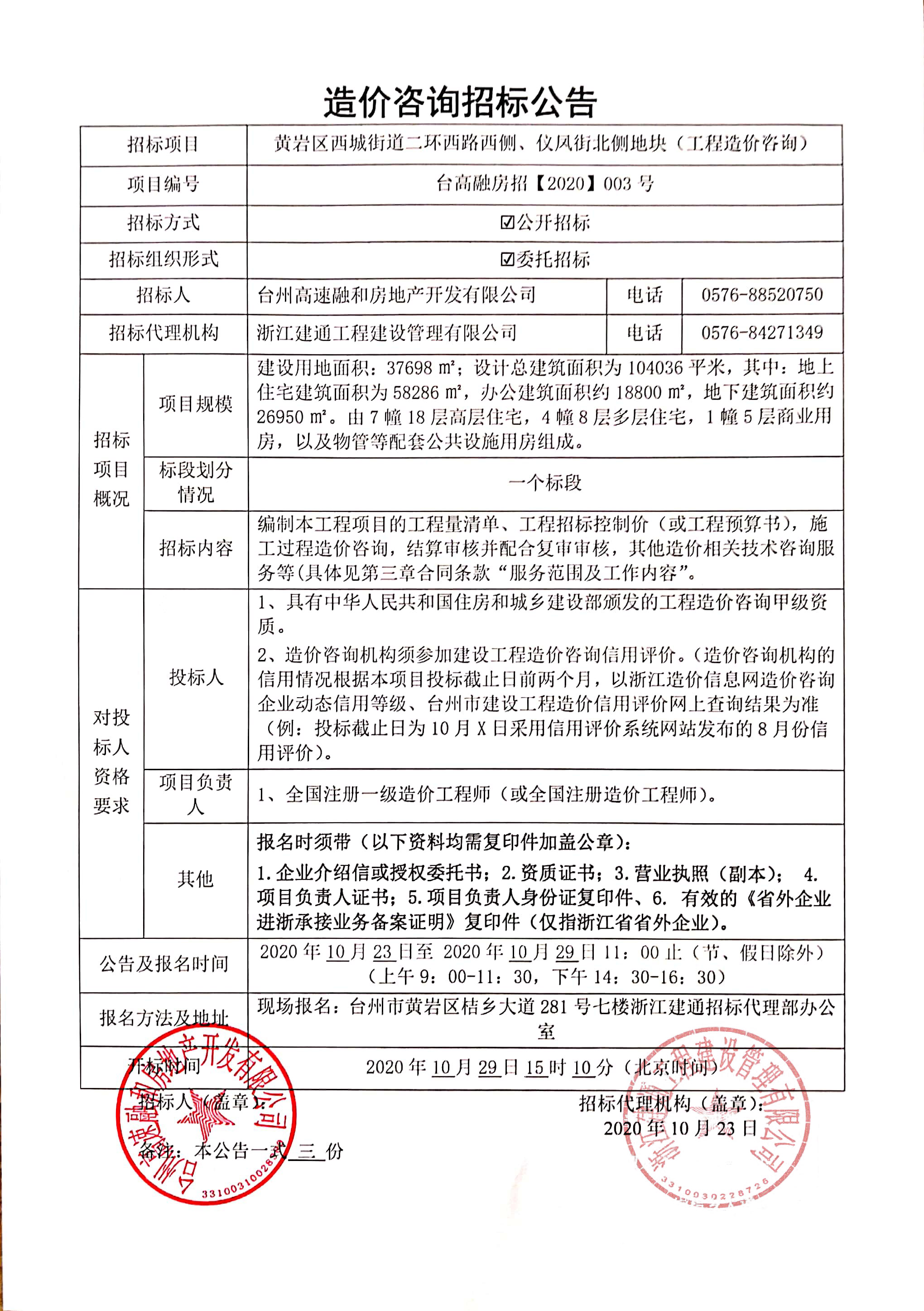黃巖區西城街道二環西路西側、儀鳳街北側地塊(工程造價咨詢)招標公告