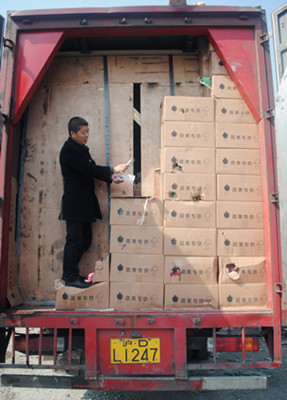 今年3月1日凌晨2時許,一輛標(biāo)有“蔬菜特供”、車牌號為滬DL1247的紅色廂式貨車駛進(jìn)臺州高速公路臺州收費所“綠農(nóng)車”專用收費道口,出口司機(jī)申報“綠農(nóng)車”運送蘋果,要求減免通行,讀卡后顯示該車免費金額為250元,收費人員按規(guī)定對該車進(jìn)行開廂核查。