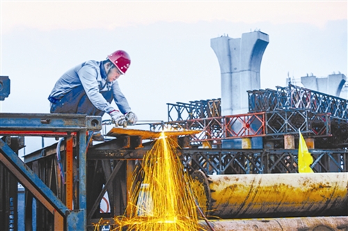 圖為6號(hào)立交的施工人員正在緊張施工。 (資料照片) 鐘 彪攝