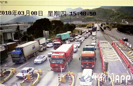 3月4日驚蜇雷鳴,大雨瓢潑,大批車輛涌向溫嶺西收費所出口。