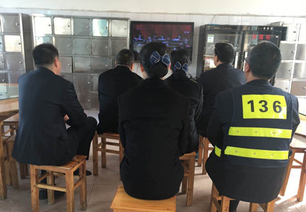 圖為公司領導班子成員、大樓本部黨員在觀看直播