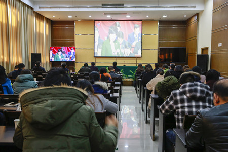 圖為集團(tuán)全體干部職工收看現(xiàn)場(chǎng)