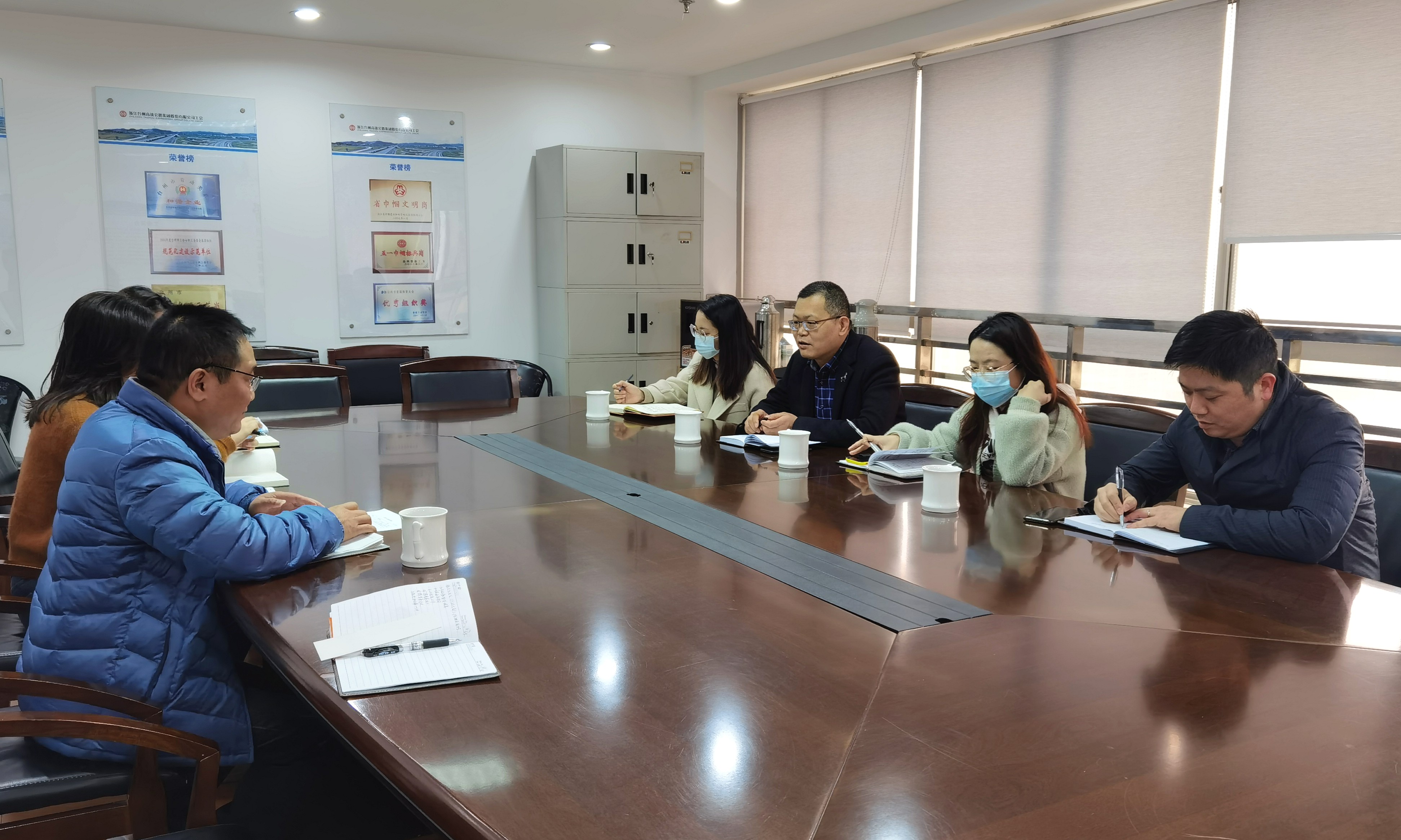 王華軍一行首先表明了來意,主要是征求考核修改意見和推進一企一品的黨建品牌建設。公司黨群部負責人王益民來訪表示歡迎,并介紹了高速集團黨組織今年的活動開展計劃,同時對今年的黨建考核辦法提出了意見建議。